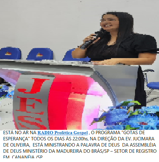 (22:00/22:30hs) - PRG." GOTAS DE ESPERANÇA" - EV. JUCIMAR DE OLIVEIRA - CANANÉIA /SP